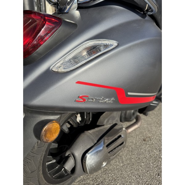 Nous vendons ce scooter Vespa Sprint 4T gris mat de 2024, première main. Stickers rouge et gris d'origine.